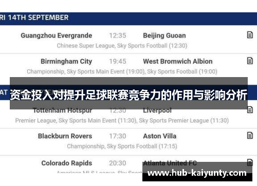 资金投入对提升足球联赛竞争力的作用与影响分析